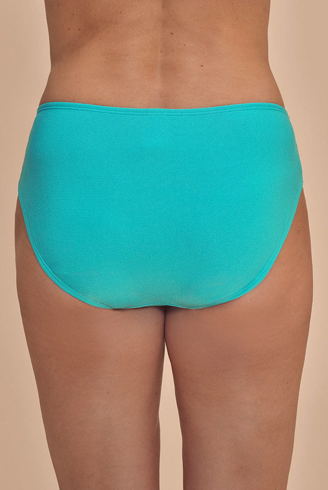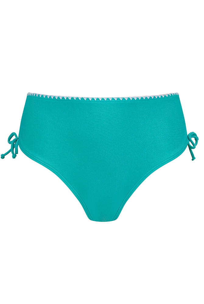 Die mittelhohe Badehose Salerno von Amoena punktet in erfrischendem Jadefarbton mit charmanter, weißer Häkelnaht am Bund und kann höhenverstellt werden. Das recycelte Hauptmaterial ist chlorbeständig und schont sensible Hautpartien mit hohem UV-Schutz 50+. Ein Sichtfutter vorne und hinten verhindert Transparenz. Die Höhe des Beinausschnitts kann mittels seitlicher Bändchen variiert werden um das Bein optisch zu strecken. Die schnelltrocknende Bikini-Hose eignet sich optimal als Wechselhose und für neue Style-Ideen zu allerlei Oberteilen. Für ein perfektes Match kombinieren Sie die Badehose mit dem Tankini-Oberteil oder dem Soft Bikini Top aus der gleichnamigen Badeserie Salerno und werden Sie zum entzückenden Blickfang an Pool und Strand.
