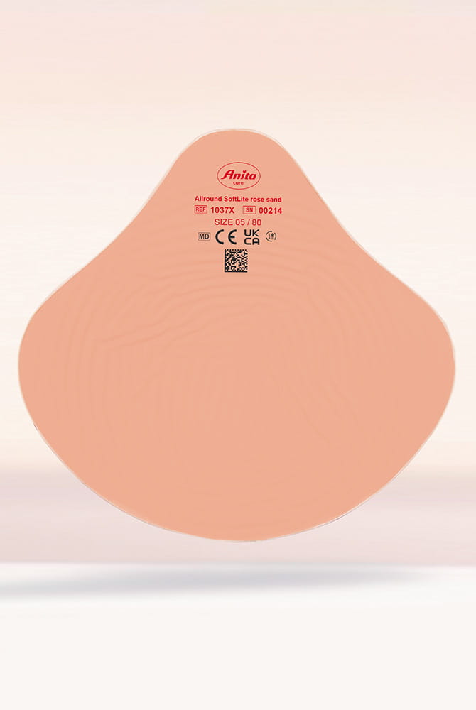 Legen Sie das Maßband nun eher locker von der Mitte der Brust (Brustbein) über die vollste Stelle der verbliebenen Brust (meist direkt über der Brustwarze) bis zur Mitte der Wirbelsäule. Achten Sie auch hier darauf, dass sich das Maßband an der Vorder- und Rückseite des Körpers auf gleicher Höhe befindet.