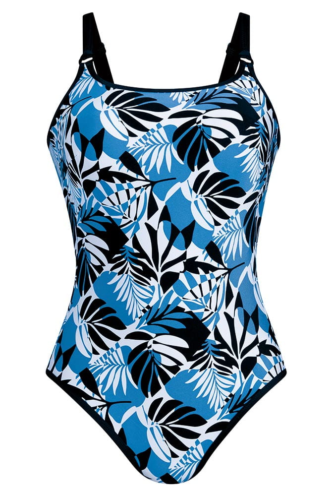 Die Badeserie Two Tone Graphic von Anita Care beeindruckt in maritimem Farbdesign und trendstarkem graphischem Muster. Der schicke Prothesen-Badeanzug Carini mit zweigeteilten, verstellbaren Trägern sorgt an jeder Wasserkante für gute Laune und vergnüglichen Badegenuss. Hochwertiges, elastisches Material aus mit LYCRA® XTRA LIFE™ Elasthan schmiegt sich angenehm weich an Ihre Haut und steht für langlebige Formbeständigkeit und optimale Passform. Ein moderater Ausschnitt verhindert allzu tiefe Einblicke ins Dekolleté. Die funktionale Fütterung in der blickdichten Cup-Schale des Einteilers formt sanft die Brust und verhindert ein Abzeichnen der Brustwarze. Im Cup integrierte Prothesentaschen beidseits verwahren sicher und diskret Ihre Schwimmprothese.