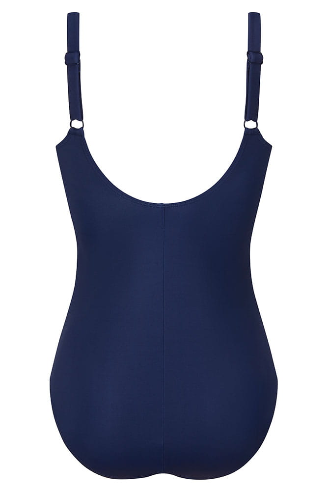 Der funktionelle Prothesen-Badeanzug Casoria von Amoena in klassischem Navy-Blue ist der Evergreen schlechthin und steht für maritime Eleganz und sonnige Stunden am Wasser. Das hochwertig recycelte Material bietet ausgezeichneten UV-Schutz 50+ und schont sensible Hautpartien. Das hohe Dekolleté verdeckt Unebenheiten der Haut und verwehrt unerwünscht tiefen Einblick. Ein stützendes Innenbustier mit Softcups und Prothesentaschen verwahrt zuverlässig und diskret Ihre Schwimmprothese. Dank der Amoena Wave Seam Technologie am Unterbrustband des Innenbustiers bekommt Ihre Epithese noch zusätzlichen seitlichen Halt. Ein Sichtfutter vorne verhindert Transparenz. Der edle Einteiler Casoria modelliert sanft Ihre Körperkontur und verschlankt optisch die Figur. Elastische, längenverstellbare Träger optimieren den hohen Tragekomfort. Ein moderater Beinausschnitt sorgt für Bequemlichkeit bei all Ihren Aktivitäten.