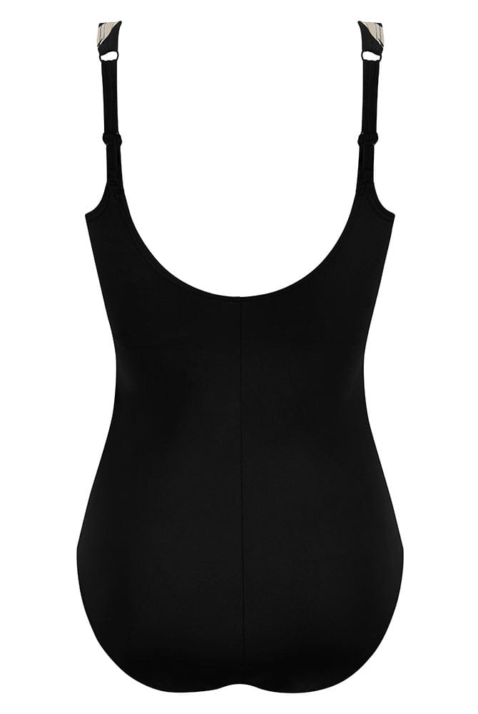 Prothesen-Badeanzug Turin von Amoena begeistert mit seinem ausdrucksstarken Musterprint aus sandfarbenen Pinselstrichen auf schwarzem Grund. Der zeitlos elegante Einteiler verschlankt raffiniert mit diagonalem Farbverlauf optisch die Figur. Ein eingearbeitetes Vollkorsage modelliert mit hohem Shape-Effekt perfekt die weibliche Silhouette. Weiche, bügellose Cups mit Prothesentaschen halten sicher und diskret Ihre Brustprothese am Körper. Amoena Wave Seam Technologie am Unterbrustband des Bustiers bietet zusätzliche Unterstützung für Ihre Schwimmprothese. Verstellbare Träger optimieren den angenehmen Tragekomfort. Das hochwertige Material mit LYCRA® XTRA LIFE™ Elasthan ist angenehm weich und garantiert langlebige Formbeständigkeit und perfekte Passform. Ein zusätzlicher UV-Schutz 50+ schont die sensiblen Hautpartien. Ein Sichtfutter vorne und hinten verhindert Transparenz und rundet den angenehmen Tragekomfort für Ihr nächstes Rendezvous mit dem Wasser perfekt ab.