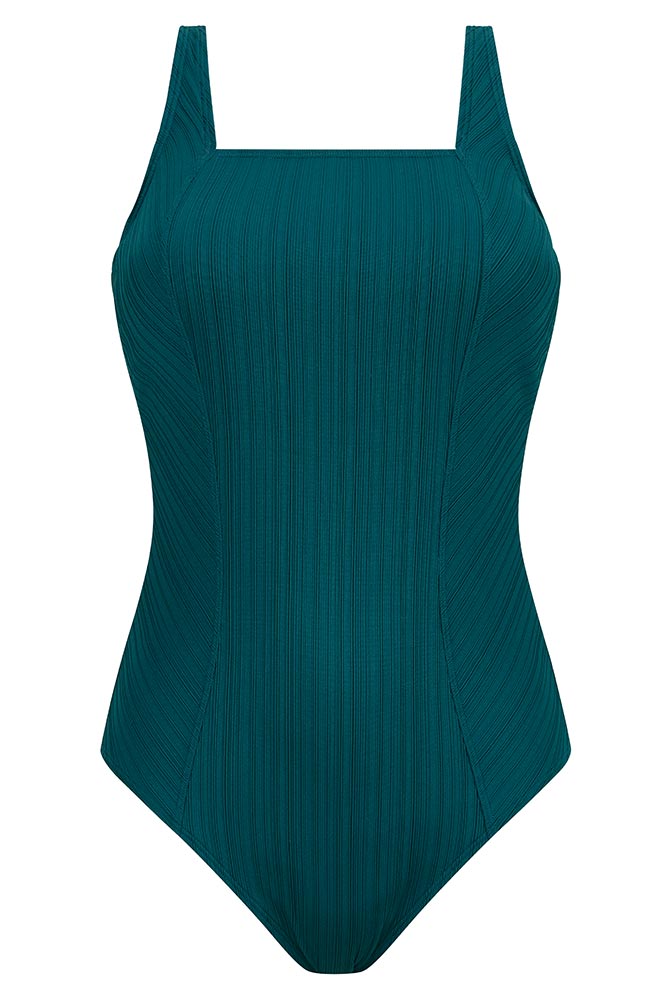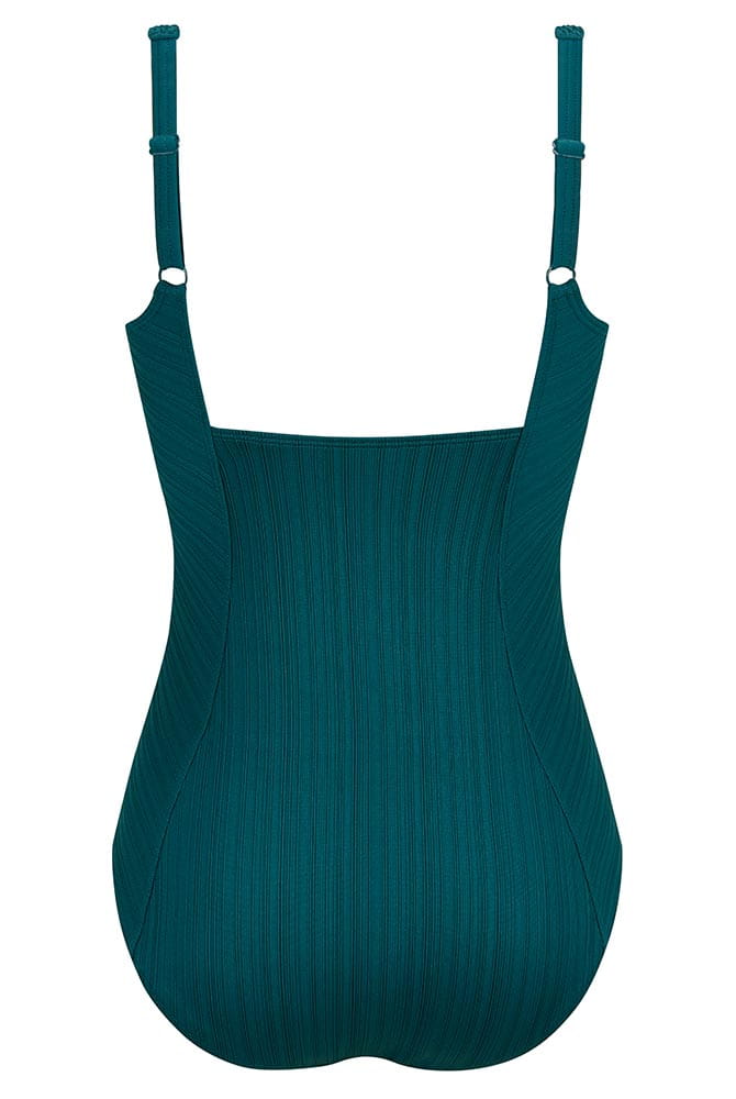 Die Treviso-Badekollektion von Amoena ist in ihrem edlen und doch modernen Design die optimale Ausstattung für Ihr Badevergnügen. Weiches Material mit schöner Rippen-Struktur sorgt für einen klassischen, zeitlosen Look und trägt sich angenehm weich auf der Haut. Ein leichter Shape-Effekt zeichnet sanft die Silhouette. Die Träger vorn sind breiter gestaltet und bieten bequemen Tragekomfort und angenehme Entlastung der Schulterpartie. Rückseitig sind die Träger verstellbar. Der Rückenausschnitt ist moderat. Ein stützendes Bustier mit beidseitig integrierten Prothesentaschen und weich gepolsterten Cups hält eine Brustprothese oder Teilprothese sicher verwahrt. Die Amoena Wave Seam ist eine Spezialverarbeitung am Unterbrustband des Innenbustiers und stützt die Amoena Schwimmprothese Aqua Wave seitlich zusätzlich. Blickdichtes Futter vorne und hinten verhindert Transparenz.