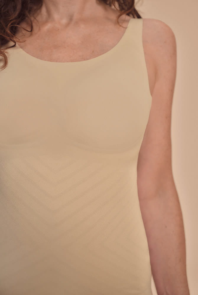 Die Linda-Produktfamilie von Qualitätsmarke Amoena mit ihrem bewährten, hohen Tragekomfort hat mit Prothesen-Body Linda weiteren Zuwachs bekommen. Der unifarbene Body in strukturiertem grafischem Muster überzeugt mit innovativer Technologie und funktionalen Details. Mit seiner speziellen Bonding-Technologie erzeugt er einen leichten Massageeffekt im Bauch- und oberen Rückenbereich und unterstützt mit angenehmem Tragegefühl Ihre Problemzonen. Breite Vorderträger verhindern ein Einschneiden und entlasten die Schulterpartie. Weiche Cups mit Prothesentaschen beiderseits nehmen Ihre Brustprothese diskret auf und sorgen für zuverlässigen Halt. Herausnehmbare Pads kaschieren Unebenheiten und geben dem Cup mehr Fülle. Verstellbare Träger optimieren die Passform. Ein flacher Verschluss im Schrittbereich reguliert den individuellen Längenbedarf und sorgt für zusätzlichen Tragekomfort.