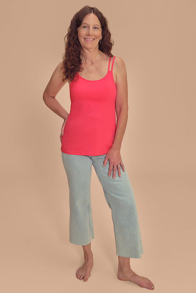 Sportlich und elegant schlicht präsentiert sich Träger-Top Valletta von Qualitätshersteller Amoena mit verstellbaren Doppelträgern in hochwertigem Material. Das ultraweiche Modalgewebe schmeichelt Ihrer Haut und schmiegt sich angenehm an Ihren Körper. Der Ausschnitt vorn und hinten des Allrounders ist vorteilhaft rund gehalten. Ein integrierter BH mit Softschalen bietet mittleren Halt und verhindert Transparenz. Mit der komfortablen Länge und dem schmalen Schnitt empfiehlt sich Top Valletta als alltagstauglicher Begleiter. Beidseitige Prothesentaschen halten eine Brustprothese sicher am Platz. Ob im Sommer als Top oder im Winter unter Bluse oder Pulli getragen ist Top Valletta Kleidung mit Wohlfühlfaktor, die Sie nicht mehr missen möchten.