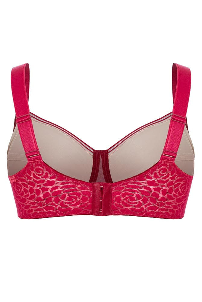 Mit stilvollem Komfort für die große Oberweite erweitert Topmarke Ulla Ihre Wäscheserie Romy mit gemoldeten Außencups und Bügeln. Romy vereint sportlich-elegante Linienführung mit femininer Raffinesse. Das durchbrochene Rosendesign verleiht dem Bügel-BH die besondere, leicht verführerische Note und macht ihn zum stilvollen Begleiter für jeden Anlass. Dreigeteilte Cups schmiegen sich weich an die Brust, bieten stabilen Halt und formen die weibliche Rundung optimal. Breite, weiche und längenverstellbare Träger entlasten Nacken und Schulterpartie und perfektionieren die Passform.